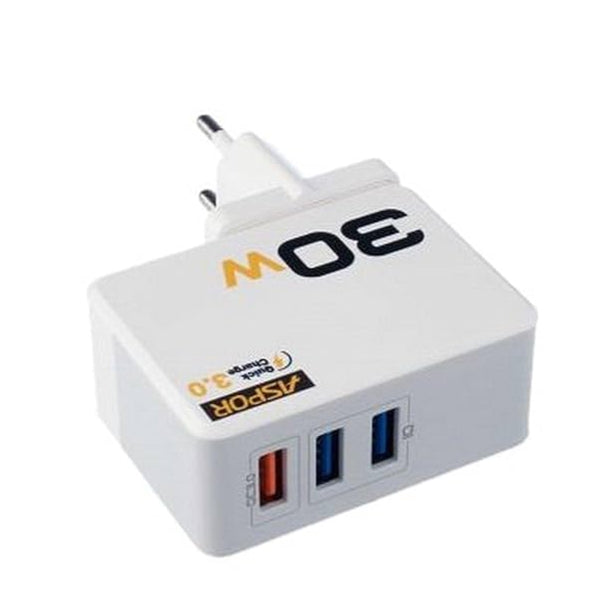 The ASPOR 3-USB Charger A858 features 3 USB ports for efficient and fast charging of multiple devices simultaneously. Its compact and lightweight design is ideal for home and travel use, with overcurrent and overheat protection to keep your devices safe.