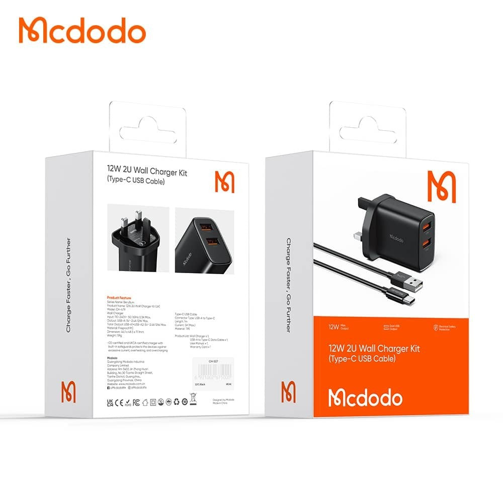Charge your devices safely and efficiently with the McDodo Charger Set CH-4791 / 4792 / 4793. This set includes multiple high-quality chargers designed for fast and reliable charging of smartphones, tablets, and other electronic devices. Compact and durable, perfect for home, office, or travel.