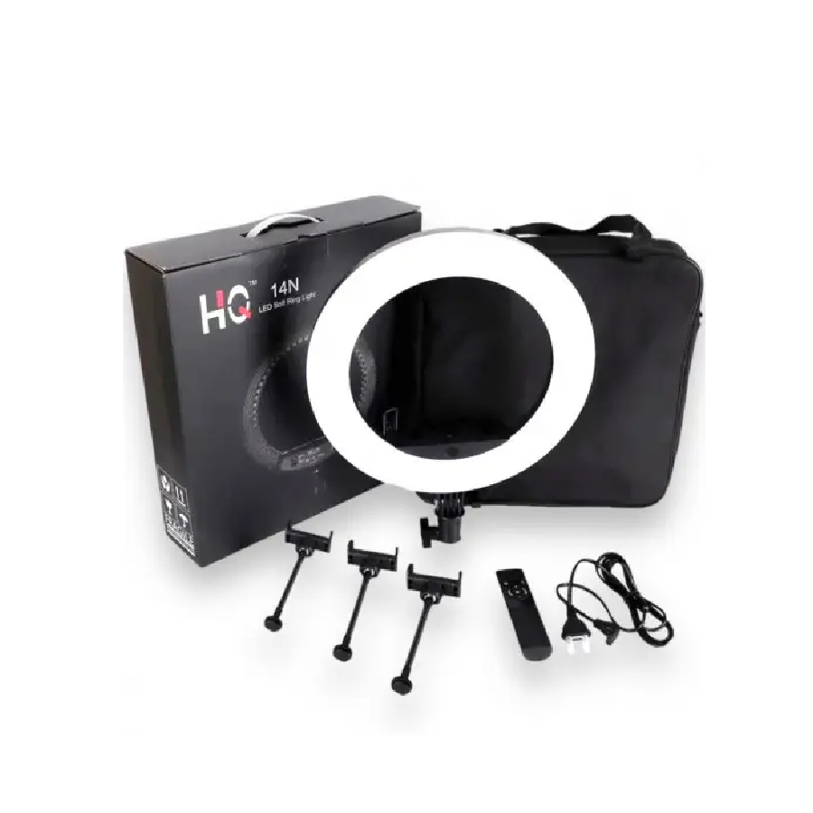The Ring Light HQ-14N provides powerful and balanced lighting for photography, live streaming, and videos. Its adjustable design with multiple brightness settings ensures perfect lighting, ideal for home or studio use.